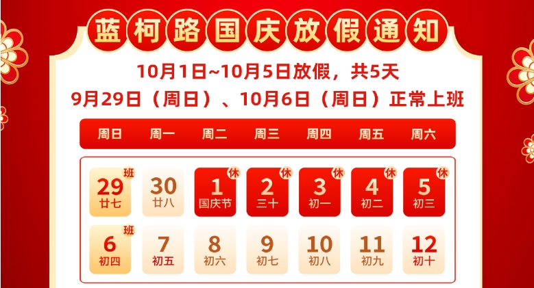 藍(lán)柯路2024年國(guó)慶節(jié)放假通知